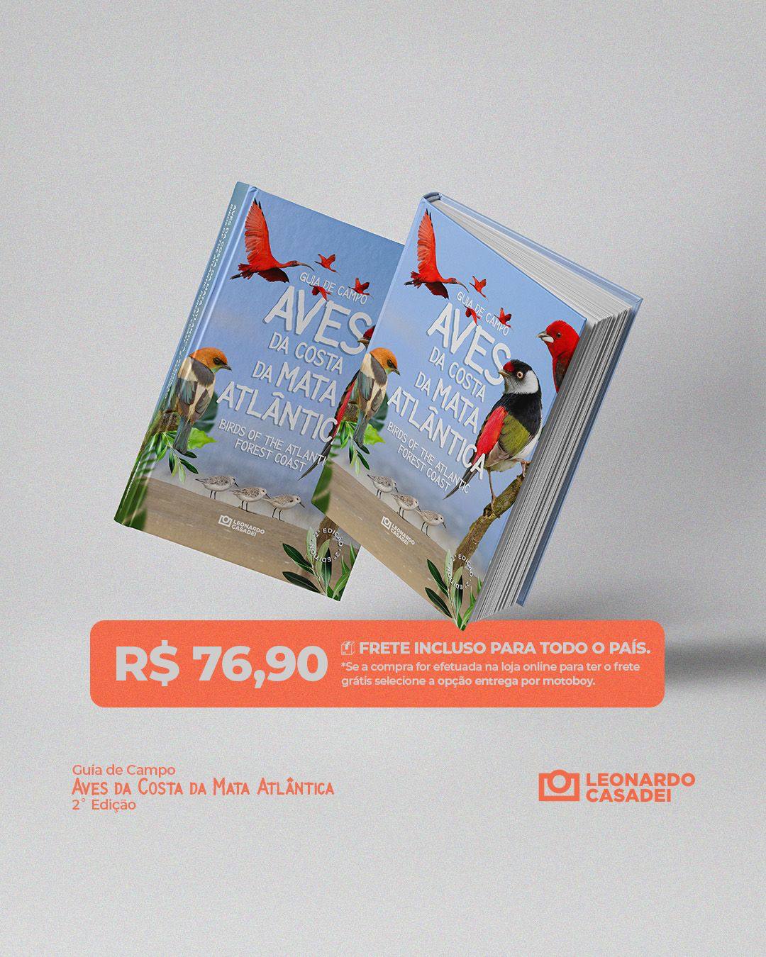 AVES DA COSTA DA MATA ATLÂNTICA: Livro com 376 páginas nas medidas 11 x 16,5 cm; contendo as principais espécies de aves encontradas na Mata Atlântica de baixa altitude do Sudeste brasileiro. O guia de campo traz 338 espécies de aves ilustradas com imagens e textos em português e inglês. Peso: 400 gramas.